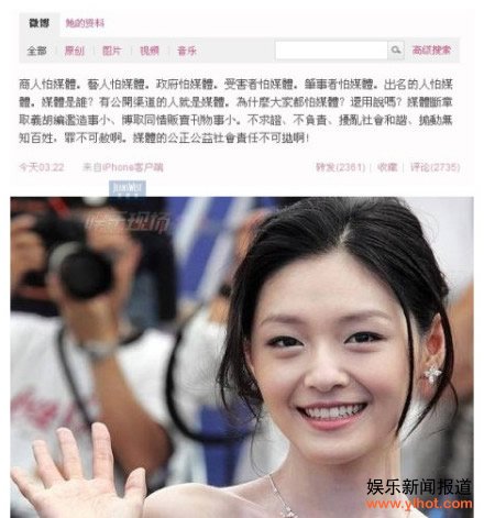 昨日是记者节,社会各界纷纷表达了对记者的祝福,大S 不走寻常路,发微薄怒斥记者断章取义、扰乱社会和谐,虽然这条微博很快便被删除,不过仍然成功引起了记者们的注意。